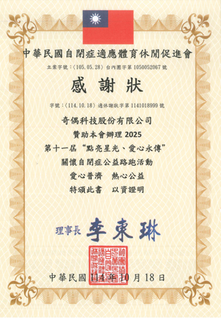 奇偶科技非常重視永續發展,積極參與社會公益並推動ESG理念,實踐「以科技創造價值、以行動傳遞關懷」的核心精神。透過此次公益路跑,希望能喚起更多社會大眾對星兒的理解與接納,並以實際行動展現企業的溫度。未來,我們將持續鼓勵員工參與志願服務與公益倡議,推動共融與永續的社會環境,讓愛的星光在每個角落閃耀。
