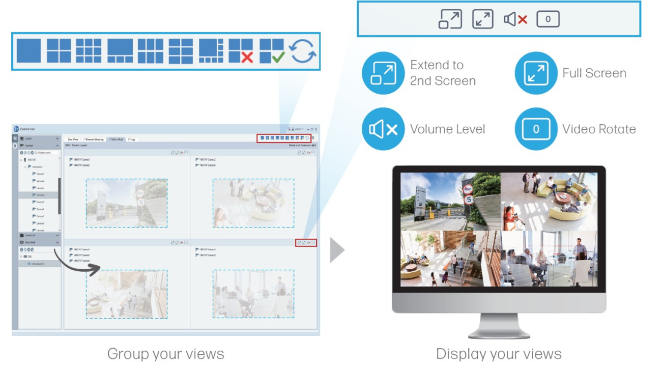 Supports single view, multi-grid, or video wall layouts with easy camera switching and remote configuration for efficient control rooms.