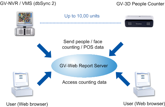 - Up to 1000 units of GV-3D People Counter and GV-NVR / VMS supported