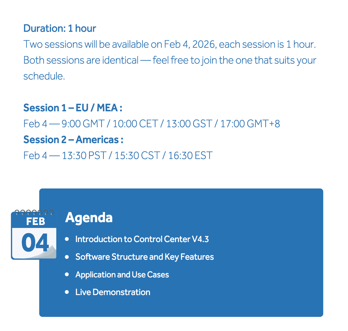 Session1: 09:00 (GMT) / 10:00 (CET) / 13:00 (GST) / 17:00 (GMT+8)